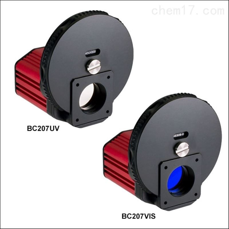 BC207UV(/M)和BC207VIS(/M) CMOS相機式光束輪廓儀分別設計用于245 - 400 nm或350 - 1100 nm波長范圍內的光束分析。每臺輪廓儀都帶有一個前置濾光片轉輪和一個500萬像素CMOS相機,其中轉輪包含六個ND濾光片(詳情請查看ND濾光片標簽)以衰減光束,而相機用于二維光束輪廓成像。每臺輪廓儀底部具有兩個1/4"-20(M6 x 1.0)螺孔用于安裝接桿或安裝至M2MS系列M2測量系統(下方單獨出售)。