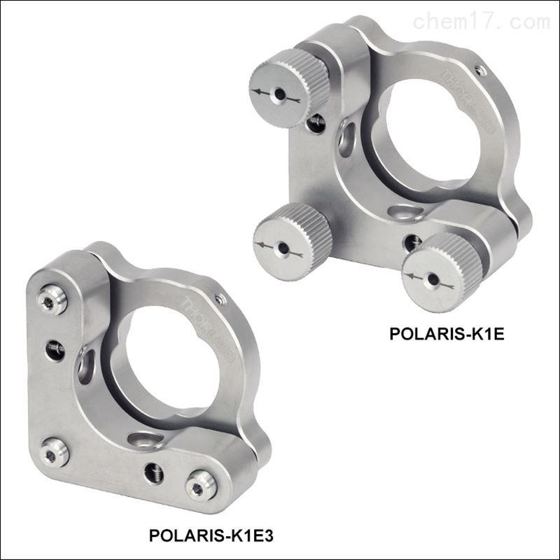 POLARIS-K1E和POLARIS-K1E3 3個調節器的?1英寸Polaris光學調整架可提供俯仰和偏轉以及Z軸(光軸)調節。Polaris集成的調節器螺紋與主體匹配,使其比其它非Polaris型號的安裝座更耐用,熱性能更好。